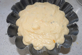 Til slutt vender du inn det hakkede appelsinskalllet og rosmarinen din. Ha røren i den smurte formen og stek den midt i ovnen på 180 grader i 40 til 50 minutter.